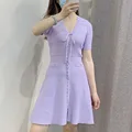 Best Seller ENGAGEMENT 2021 Summer New Single-breasted Knit Dress Female Wavy V-neck Bow Skirt