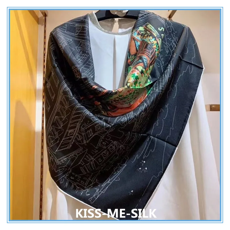 Exclusive KMS Sky Garden Shawl Twill Silk Square Scarf Mulberry-Silk Scarf Shawl 90*90CM/50G